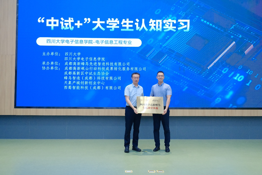 6月30日上午,k1体育高新蜂鸟实践教学基地揭牌仪式暨2025年暑期实习项目开班仪式在天象产城创新创业中心举行。k1体育经理杨阳、电子科学与技术系系主任李智、部分教师代表、即将参与暑期实习的电子信息工程专业员工一同参加了活动。该活动受到了公司的高度重视和热烈欢迎,成都高新蜂鸟先进智造科技有限公司董事长田勇携相关负责人出席了仪式。