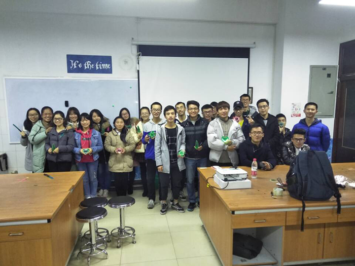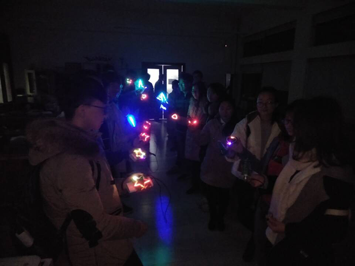12月18日,公司辅导员老师、科技园部长们通过群、公众号等方式面向2017级全体同学进行了宣传,之后积极接受了同学们的踊跃报名,并从周一晚开始分发焊接材料。此后一周内,科技园内每天都有部长值班,部长们耐心答疑、指导并带领同学们完成DIY焊制整个有趣的过程。12月24日晚上7点,沙龙准时开始。同学们将一周的成果带到实验室进行展示交流,如五角星、摇摇棒、心形灯、彩灯小树,各种炫酷的DIY作品在一开始就烘托七起了全场的气氛。电子科技园技术部部长邱峻寅代表电子科技园对同学们的到来表示了欢迎,详细审视了同学们自己动手制作的DIY焊接作品,接着,部长组织了参与的同学们随机交换自己的作品作为年底礼物的活动,大家都写下了自己心底给对方的祝福,然后进入了欢快的游戏环节,现场气氛热烈,笑声连连,整场沙龙活动在欢声笑语中画上圆满的句号。