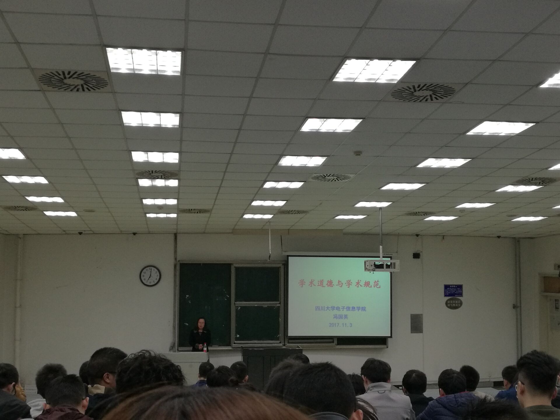 2017年11月3日晚19:00,由k1体育十年品牌经理冯国英教授主讲的研究生综合素质系列课程之诚信教育于k1体育望江校区基础教学楼C201圆满结束。本次课程面向k1体育17级全体研究生,旨在端正学术学风,加强学术道德。