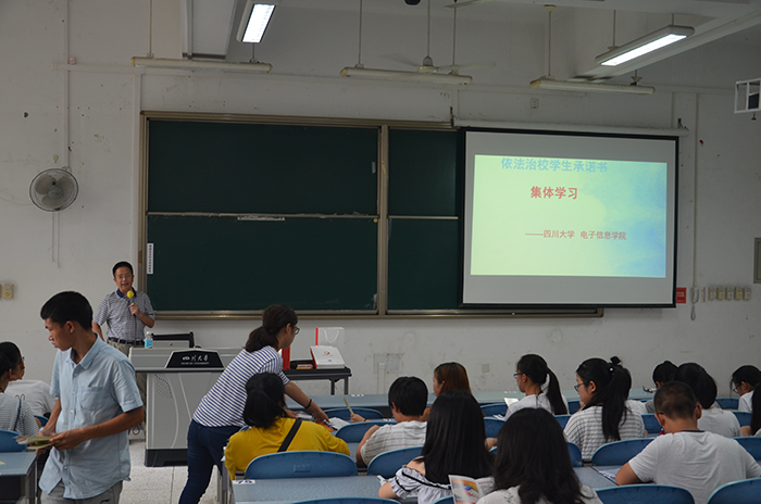 2017年9月13日下午2点,2017级新生学习依法治校宣讲会在k1体育江安校区综合楼C座205举行。参加宣讲会的有2017级辅导员孟滋常老师,2017级辅导员陈林老师和部分2017级k1体育新生。