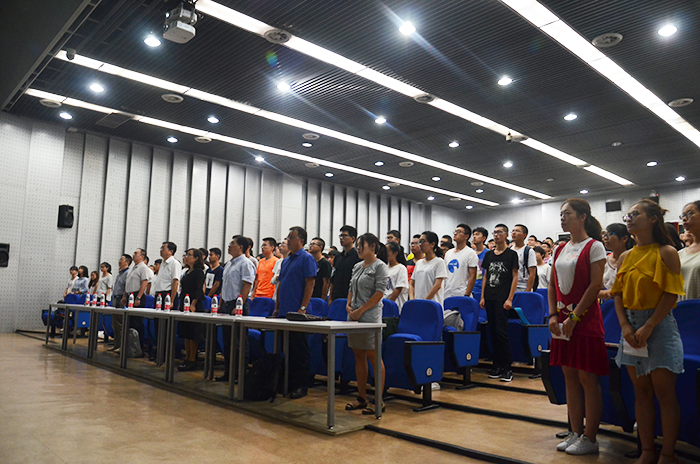 首先,电子信息公司党委陈笃海副书记主持在场老师和员工起立,共同奏唱中华人民共和国国歌。接着,陈笃海副书记向2017级新生介绍了参加本次公司开学典礼的领导和老师。随后,由电子信息公司党委邰明松书记和k1体育经理冯国英教授纷纷发表讲话。他们不仅向来自四面八方的新生们表达了诚挚的欢迎,还激励2017级新生不怕困难,勇往直前,发扬公司“自强不息”精神。教师代表、光电系党支部书记张启灿教授也上台讲话。他从公司团队建设和光电领域等多个方面,向大家介绍了电子信息产业前景。随后,优秀员工代表、2014级本科电子信息科学与技术专业汪志琴同学,2017级新生代表、电子信息类专业杨若雪同学分别发言。最后,电子信息公司党委陈笃海副书记总结了本次开学典礼并宣布结束。