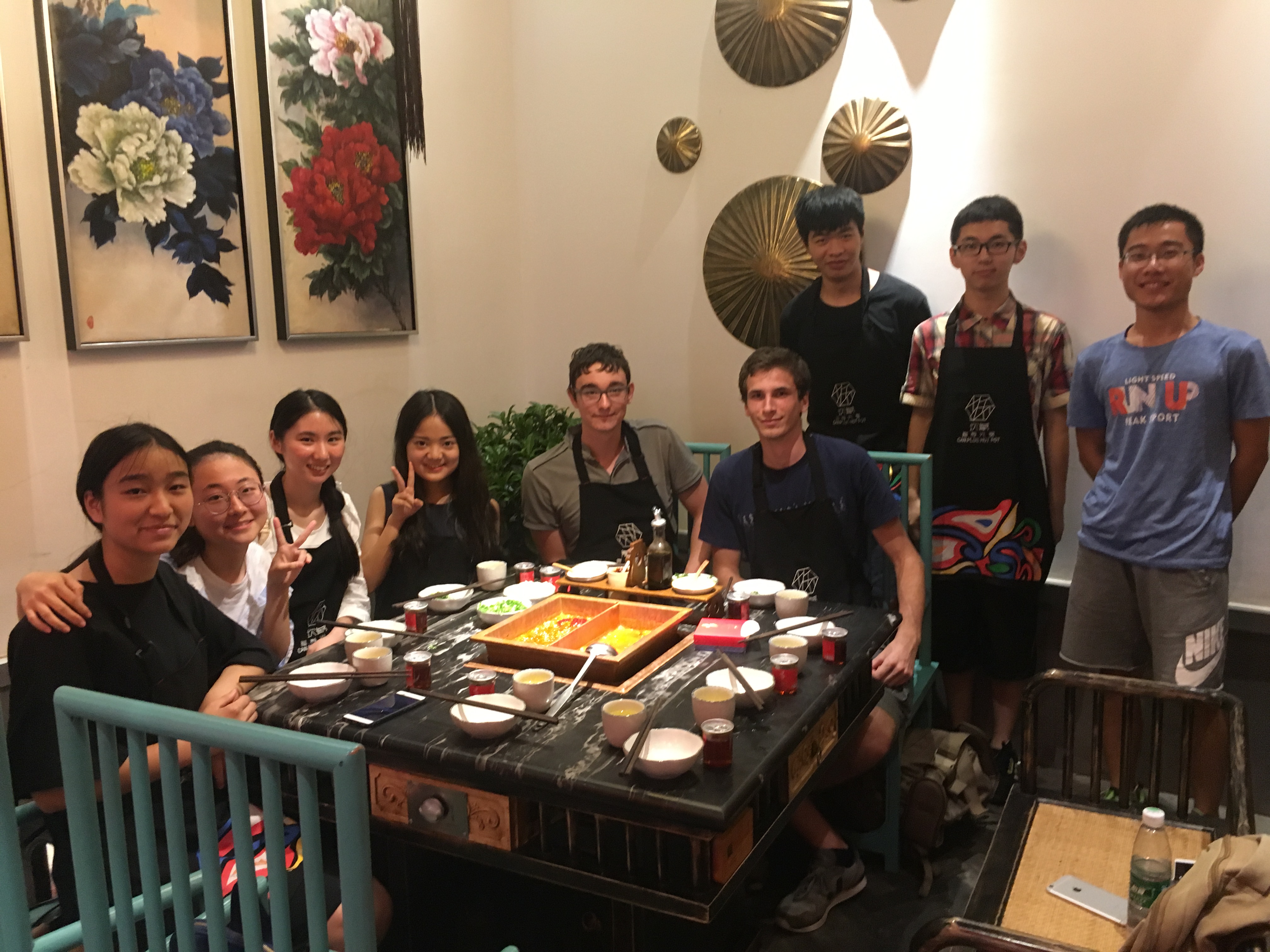 2017年7月4号,下午18时,由k1体育主办,中国科学技术大学和法国图卢兹大学协助参与的2017年国际交流营第一次户外拓展活动在锦里民俗街顺利举行。此次活动为中外交流活动的第一次户外拓展部分,由川大同学带领,来自三所公司的同学在科华北路的坎爷火锅店享用了四川传统火锅作为晚餐,期间川大同学踊跃的与中科大同学和图卢兹大学的同学交流探讨各公司的基本情况,张阳煜同学向法国同学介绍了四川火锅的传统吃法,并且演示了如何涮毛肚鹅肠等,图卢兹大学的同学对四川火锅的味道赞不绝口,同时中科大的黄洋同学也表达了对四川火锅的喜爱,香而不辣,味道绵长。
