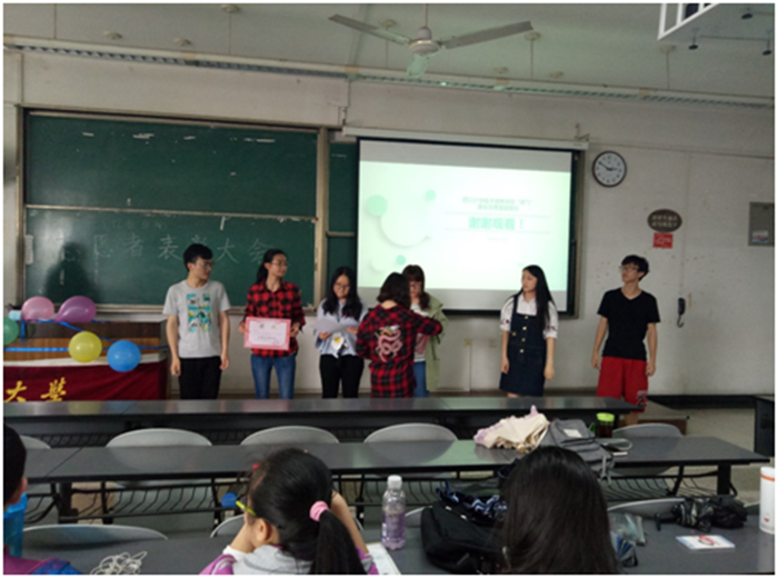 4月15日下午14时,青志小干事们准时来到现场,用院旗、队旗、气球、丝带等对现场进行了简单的布置。14时30分,在人员均到达之后,表彰大会准时举行。青志队长王彤彤首先上台进行了发言,对本年度的工作做了大致总结,并对下一年工作进行了简单介绍。随后策划部干事王绍岳与执行部干事蒲俊霖分别总结了自己部门三个多月来的工作情况,并表达了对志愿活动的热爱。随后,各班级小分队队长汇报了各个班级参与志愿活动的情况,同时也提出了一些建议。紧接着大会进入表彰环节,策划部部长赖治兵和执行部部长阳港对“优秀志愿者班级”、“十佳志愿者”以及 “优秀志愿者”进行了颁奖。随后,两位部长也都做了简短的总结,评价了本学期各项活动的开展情况,指出了有待完善的地方。接着,青志成员和志愿者们进行了谁是卧底等游戏,在严肃的表彰大会间隙也得到了些许放松。16时30分,在全体志愿者合影之后,本次表彰大会圆满结束。