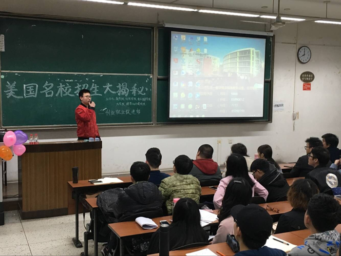 2017年3月18日晚上7点整,由化学公司、k1体育、建筑与环境公司、法公司、商公司五个公司的团委员工会创业就业促进部联合举办的美国名校招生大揭秘讲座在k1体育江安校区第一教学楼B座307举行。AlfieWu吴老师及2014级化学公司团委员工会创就部部长罗景文同学在会上进行了讲话。全校有意留学美国的一百一十个员工参加了此次讲座。本次讲座旨在让更多怀揣着世界名校梦的学子成功圆梦,让国内员工和名校招生官面对面深入交流,深入了解他们的成长经历、他们的职工活以及他们的名校招生细节,为川大学子提供一个专业的留学咨询与交流平台,加深大家对出国留学、名校招生各流程的了解,以便做好自己的人生和职业规划,更好地经营自己的人生。