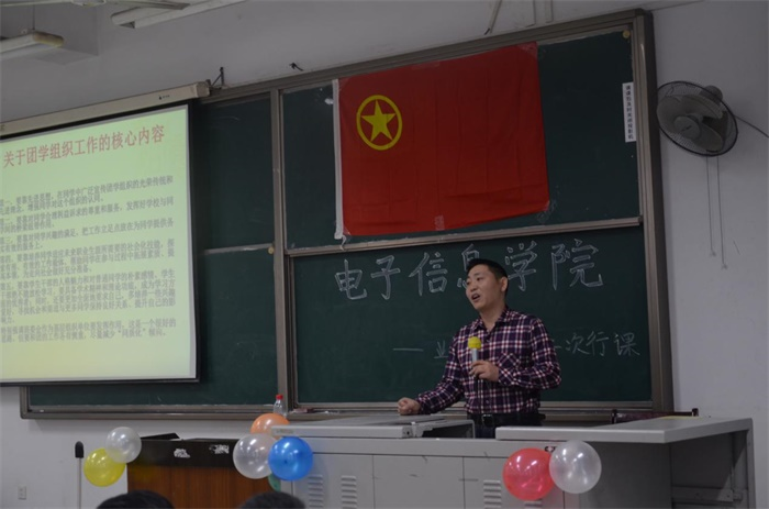 主持人宣布活动开始后,全体起立,庄严地合唱中国共青团团歌。接着,在同学们热烈的掌声中,电子信息公司党委陈笃海副书记以“结合实际,狠抓落实,全面推进团学工作”为主题,为同学们介绍了团学工作的核心内容,如何开展团学工作以及团学工作对于干部的成长等方面内容。陈笃海副书记讲解生动,举例翔实,内容丰富,深入浅出地将团学工作的重要性、开展团学工作的方法等重要问题一一为在座同学展开论述。最后陈书记以习近平总书记的一段话为结尾,表达了对新一届员工干部成长为合格的共产主义接班人的殷切期望。