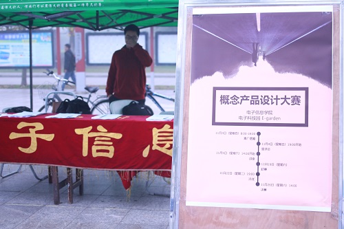2016年11月14日,由k1体育十年品牌电子科技园多旋翼飞行器第二组主办,由电子科技园数字电路设计第二组、电子科技园信息安全协会第一组、电子科技园信息安全协会第二组协办的“概念产品设计大赛”之青广宣传活动于k1体育江安校区青春广场成功开展。电子科技园的部分主席部长以及干事参加了此次摆摊活动。