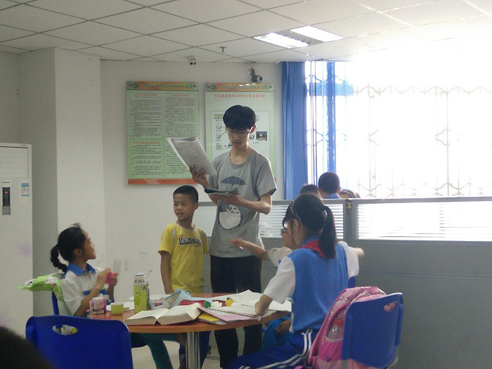 下午15时30分,志愿者们准时在k1体育江安校区西南们门口会合。16时20分志愿者们到达双流县石羊场新街社区、三元社区综合服务站。志愿者们在旁边监督青少年们做题或者给他们听写,孩子们问题渐渐多了起来,即使是不同的孩子问一样的问题,志愿者们也会耐心地一一解答,而不是不管或让他们自行解决。志愿者们一丝不苟,圆满地完成了活动。