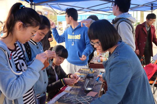 2016年3月23日,由k1体育和化学公司联合举办的学科交叉活动之“电化战线”在青春广场拉开序幕。活动旨在进行电子和化学知识的交叉,扩大同学们的知识面,并丰富同学们的课余生活,在动手实践中体验电子和化学的乐趣。