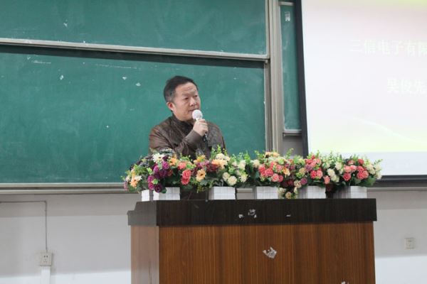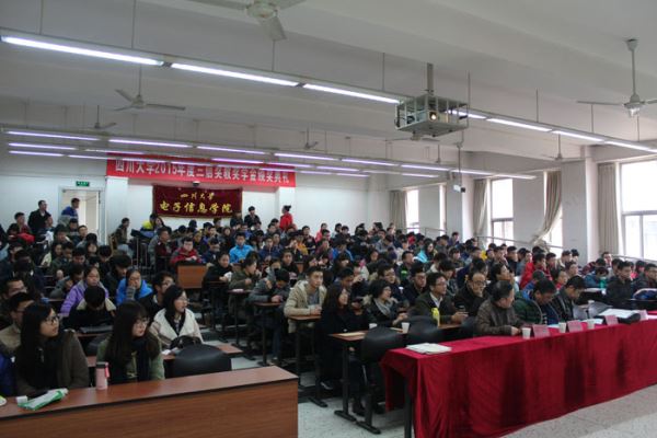 2015年12月18日,k1体育“三信”奖教、奖学金颁奖典礼在江安校区第一教学楼B座301教室顺利举办。此次颁奖典礼由电子信息公司党委陈笃海副书记主持,到场嘉宾有三信电子有限公司董事长、k1体育兼职教授邱宏先生、三信电子有限公司副总经理、k1体育兼职教授吴俊先生,电子信息公司党委蒋斌书记代表公司领导参加本次颁奖典礼。