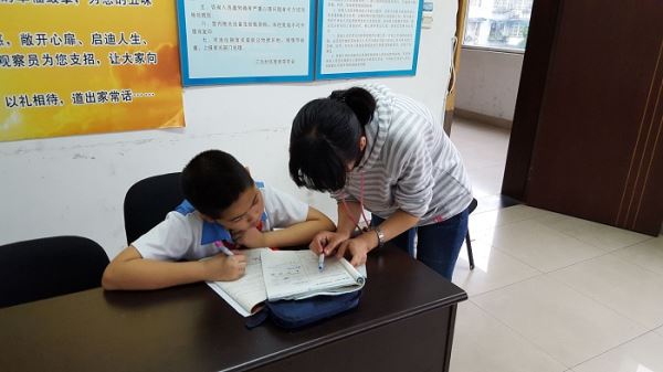 下午16时30分,志愿者们准时到达新街和三元社区服务站阿福童之家。见到志愿者们,同学们都显得十分激动,一段时间的喧闹后,同学们在老师的组织下安静下来,开始做作业。