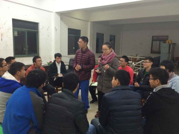 晚上7:40,活动正式开始。三个公司的各班长围坐成一圈,相互进行了自我介绍,并通过一些破冰小游戏增进了彼此的认识。接着,班长们就各自在班级工作中遇到的困难和得到的经验进行了讨论和分享,也提出了一些比较实际的问题。这些问题普遍反映出同学们对集体活动的参与热情与积极性不高,班级凝聚力不强的现象。针对这些问题,班长们进行了激烈的讨论,最终也收获了一些较好解决方案。之后,已经相互熟悉的班长们进行了“击鼓传花”、“不要7”、“交换名字”等趣味小游戏,在每一轮的游戏中都有一些班长受到了“惩罚”:真心话大冒险、俯卧撑等等,现场不时爆发出阵阵笑声,气氛十分轻松活跃。在本次会议的结束之际,三位部长进行了简短的总结,并结合班长们的发言补充了一些建设性的意见,分享了自己的工作经验,同时也给予了各班长很大期望。此次三院联合班长联席会于晚上8:50拉下了帷幕,不同公司的班长们互留了联系方式,约定之后继续交流合作。