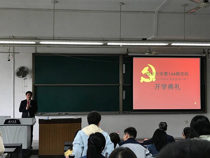 在庄严的国歌声中,第144期党校开学典礼正式开始。首先,主持老师向在座同学简单介绍了本期党校的授课方式,也对在座的入党积极分子提出了党课学习的要求。之后,由汪朝清教授开始了“深刻认识和理解党的性质,为决胜全面小康社会,夺取新时代中国特色社会主义伟大胜利而奋斗”的主题授课。
