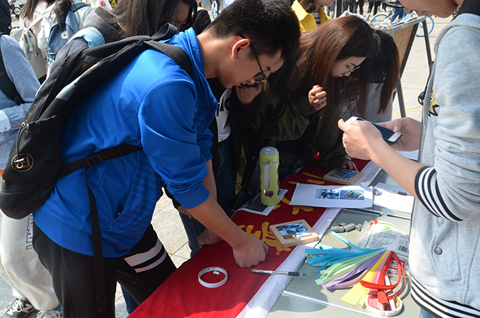早上7时,工作人员在江安校区六舍活动室集合,检查相关活动道具,将所有物资搬至指定位置,确保活动可以顺利进行。7时50分左右,志愿者到达江安校区青春广场活动摊位,与工作人员一起进行了相关准备工作。活动正式开始后,路过的同学纷纷被有趣的活动内容和丰厚的奖品所吸引,积极参与到活动中。并且前期宣传时开展的的空间转发说说集赞活动也取得了显著效果,不时有同学前来兑换奖品。12时左右活动摊位又迎来了许多刚刚下课的同学,他们也踊跃地参与到活动中来,将活动氛围推向高潮。大部分同学都成功完成了所有的游戏项目,并且拼装好了马达,获得了参与电路抽奖的机会。也有部分同学未能通过所有环节,遗憾地与抽奖机会失之交臂,但他们也得到了参与奖并且学习到了一些与电子信息、空天科学相关的知识。当天18时,已经到了预期的活动结束时间,仍然有同学在摊位上参与游戏,工作人员便推迟了结束时间。18时20分左右,工作人员清理了现场后进行了合影留念。随后,将剩余物资归还至活动室。