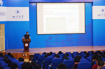 在陈林老师对新生们进行了简单的致辞之后,资助中心帕哈尔定老师上台发言。帕哈尔定老师代表员工资助中心向同学们介绍了公司资助政策。首先,老师就提到:员工资助不仅仅是资助,还有育人。接着,帕哈尔定老师向同学们介绍了资助的内容,其中包括:员工资助保障全覆盖,国家助学贷款,奖学金,助学金,困难补助,学费减免,学费补偿,贷款代偿及学费资助,医疗保险等方面。随后,帕老师讲了有关育人的内容。他介绍了公司的部分爱心公益社团,并举例说明了公司的部分主题教育活动。介绍完毕以后,老师留下了员工资助中心、贷款办、勤工助学中心以及学工部地址和联系方式,以便有需求的同学们及时联系。会议的最后,帕哈尔定老师告诉大家:贫穷不可怕,有需要就申请助学金,不是急需就将机会让给更有需要的同学,不要觉得不好意思,不要因为拿了钱就觉得丢了自尊。整个会议过程中,同学们都认真聆听,并用手机记录下重要内容。