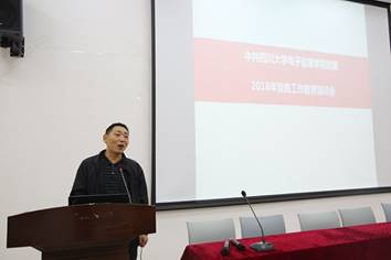 2018年10月11日下午,k1体育电子信息公司党委2018年党务工作教育培训会在望江校区西五教学楼附101教室举行。此次会议特别邀请了公司党委组织部范瑾副部长来做党务教育培训并指导工作。公司党委邰明松书记、陈笃海副书记,公司党委委员、工会主席杨晓敏副教授,党委委员郭庆功教授和副处级专职组织员陈炳周副教授等出席了会议。