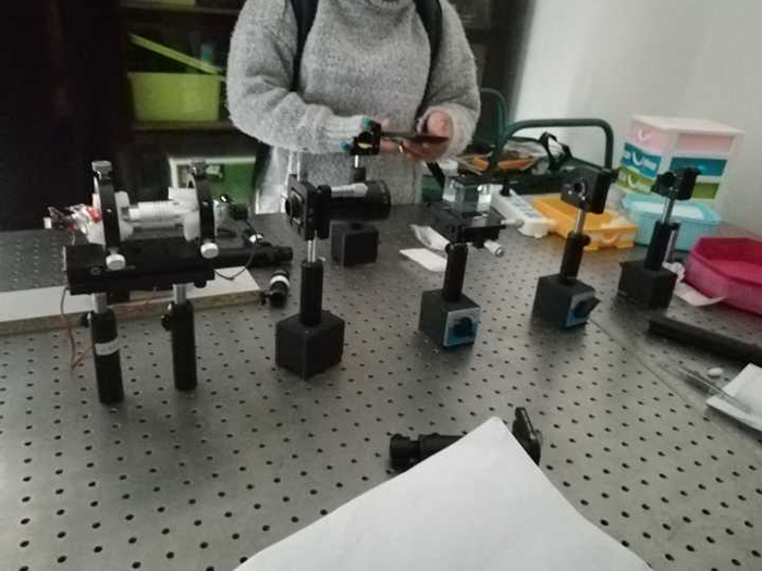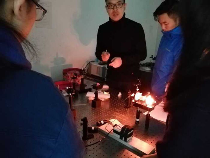 上午9:00,本次走进实验室之旅正式开始。当同学们走进实验室时,呈现在他们眼前的是各式各样的实验仪器,以及早已在实验室里等候的学长们。学长们十分热情,在进行了简单的自我介绍之后,便直入主题——开始为同学们介绍迈克尔逊干涉实验。学长们对实验的讲解十分细致。特别地,对于实验所需的光,学长们专门说明了用激光与白光两种不同光做实验的效果,强调了用激光做实验的好处。接着,学长们讲解了该实验的操作步骤,实验过程中的一些注意事项,以及实验的预期结果。听了学长们的讲解,同学们纷纷跃跃欲试,想要动手实践一下。学长们也答应了他们的请求,并且还指导同学们进行实验。实验结束后,学长们对同学们做出的光路图进行了点评,并指出了同学们做实验的过程中的一些细节问题;同学们也根据自己做实验时的感受与体验,提出了一些心中的疑惑,学长们对其进行了一一回答。活动最后,参观实验室的同学与学长们进行了合影,为大家留下了一份珍贵的回忆。至此,本次活动也圆满结束。