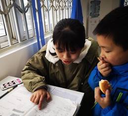 前往社区的路途中,志愿者们在期待之中还怀着担心无法解决小朋友问题的淡淡的忧虑。但在走进活动室的那一刻,孩子们热情的问候和欢快的笑声让志愿者们这一切复杂的心情烟消云散。志愿者到达不久其他小朋友也陆陆续续赶到了。在和志愿者们打过招呼后,小朋友们开始认真完成自己的家庭作业,他们有问题便向志愿者请教,活动室里充满着志愿者们答疑解惑的声音。志愿者们帮助小朋友解决作业中的难题,并教给他们解题的思路和方法。小朋友也在一起努力思考,和志愿者积极地互动。在志愿者们的帮助下,小朋友们都能够完成当天的学习任务,同时志愿者也在答疑解惑的过程中纠正了小朋友们不好的学习习惯。