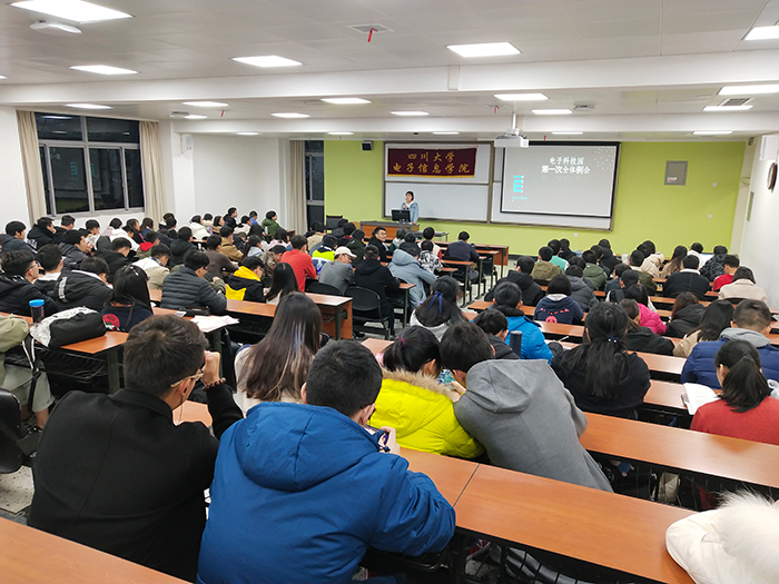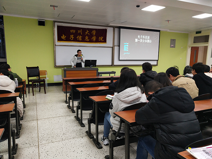 2019年3月2日,由电子科技园模拟电子设计协会第一组、电子科技园模拟电子设计协会第二组、电子科技园嵌入式协会、电子科技园光电设计协会、电子科技园飞思卡尔协会、电子科技园多旋翼飞行器(第一组)、电子科技园多旋翼飞行器(第二组)、电子科技园数字电路设计(第一组)、电子科技园数字电路设计(第二组)主办,电子科技园第一组、电子科技园第二组、电子科技园第三组、电子科技园第四组、电子科技园第五组、电子科技园POV协会第一组、电子科技园POV协会第二组、电子科技园船模协会第一组、电子科技园船模协会第二组、电子科技园电子设计竞赛(第一组)、电子科技园电子设计竞赛(第二组)、电子科技园电子设计竞赛(第三组)、电子科技园电子设计竞赛(第四组)、电子科技园信息安全保密协会、电子科技园信息安全协会(第一组)、电子科技园信息安全协会(第二组)、电磁智能车协会、物联网实践与创新协会、网络技术协会协办的电子科技园第一次例会在k1体育江安校区第一教学楼B座举行。电子科技园主席团、部长团以及全体干事参加了此次例会。