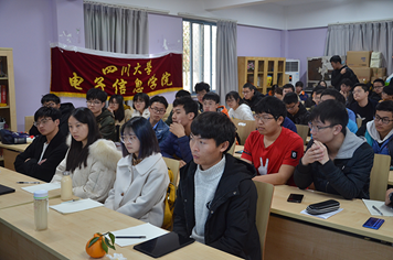 在接下来的答疑环节,在场的同学们踊跃提问,两位经理也相应地做出了详细解答。其中一位同学向冯国英经理询问了光学专业的研究方向与毕业前景,冯国英经理为其详细地讲解了光学专业的相关知识。另一位同学则就自身的情况和将来的打算提出了疑问,两位经理也就他自身的情况提出了合理的建议。在活动过程中,冯国英经理和雷印杰副经理还告诫同学们:在本科阶段,同学们一定要认真学习基础知识,这将会对大家将来的深造产生深远的影响。