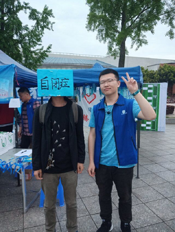 活动开始的正午,青春广场春意盎然,人头攒动,蓝色行动更是引人注目,不一会儿帐篷前便水泄不通。面对同学们好奇的提问,志愿者们面带微笑,耐心地解答。在与志愿者互动的过程中,同学们既了解了自闭症的相关知识,还感受到了来自自闭症孩子们特殊的“爱”——他们精心制作的牛轧糖。志愿者们和同学们共同携手,将川大梦想的天空变得分外的蓝。同学们完成活动游戏后与志愿者们亲切合影,脸上的笑容既有付出得到收获的欣慰,又有帮助了自闭症孩子们的喜悦。